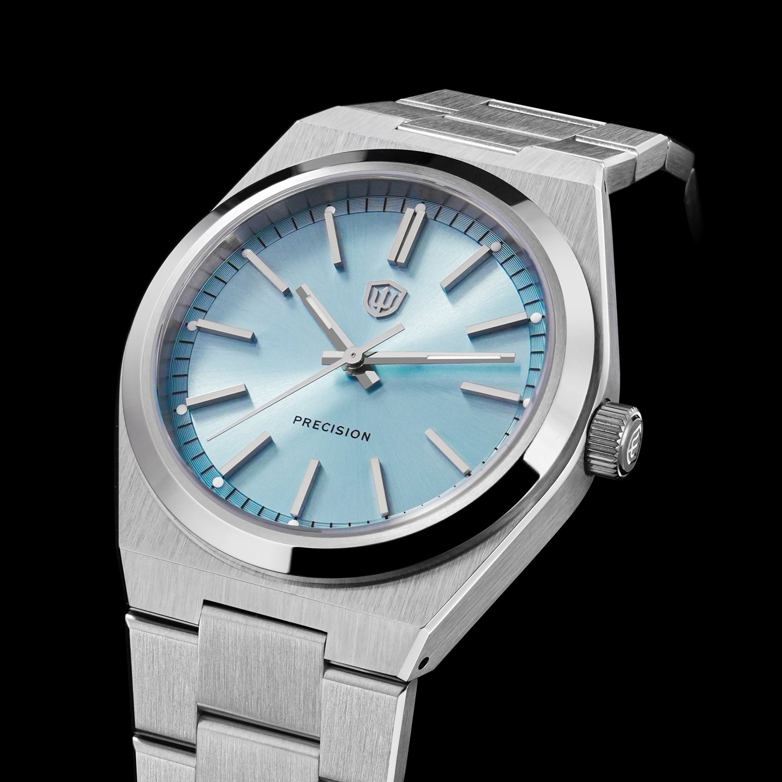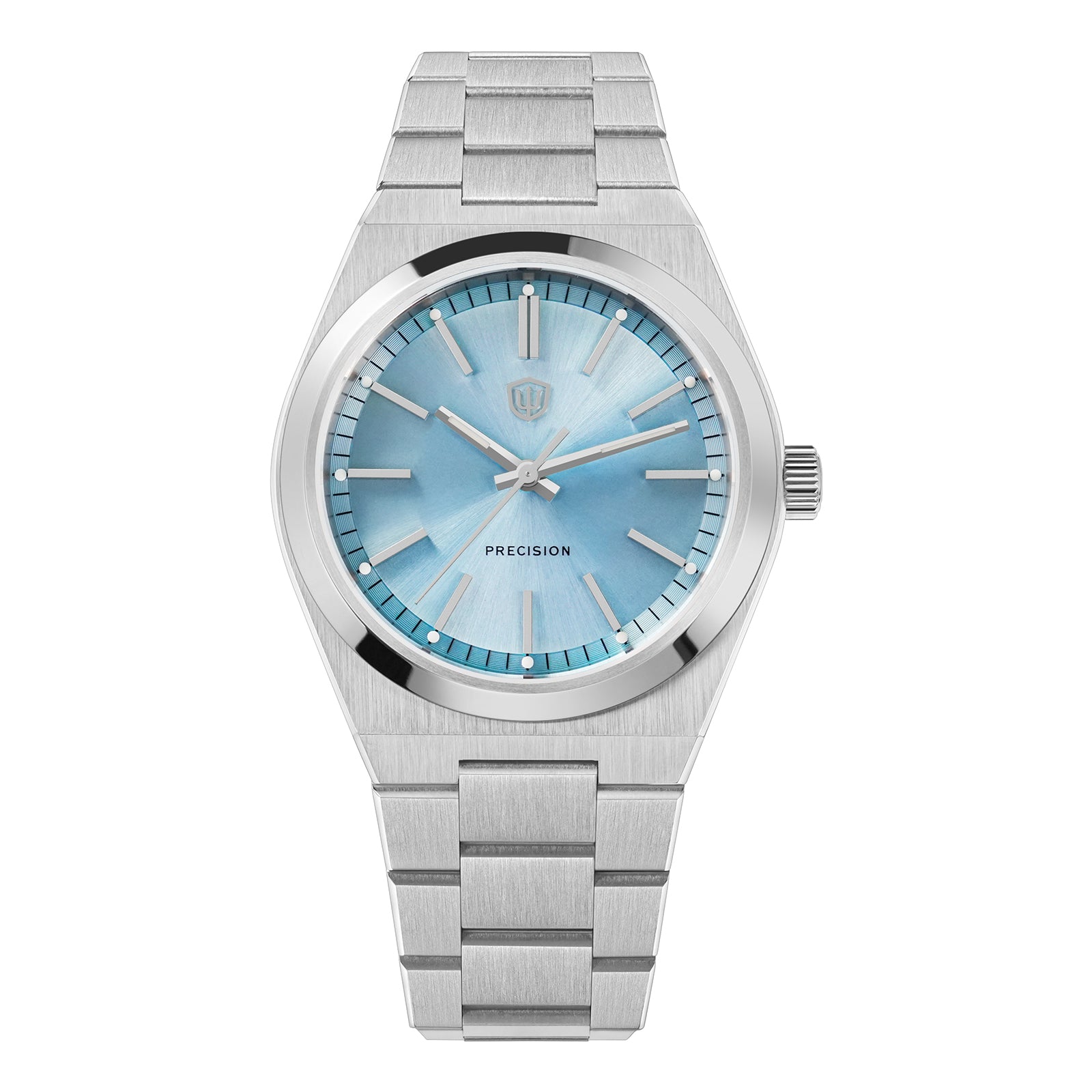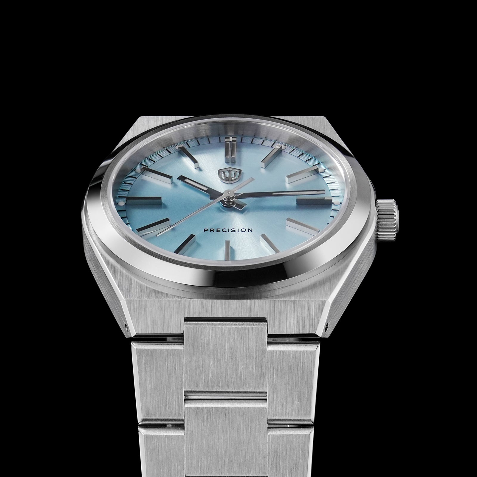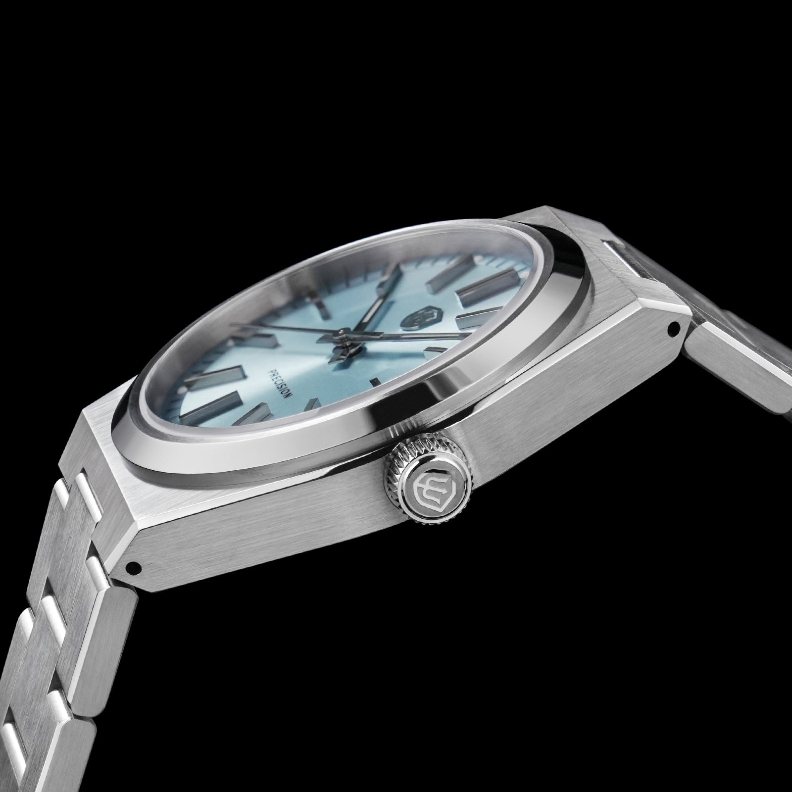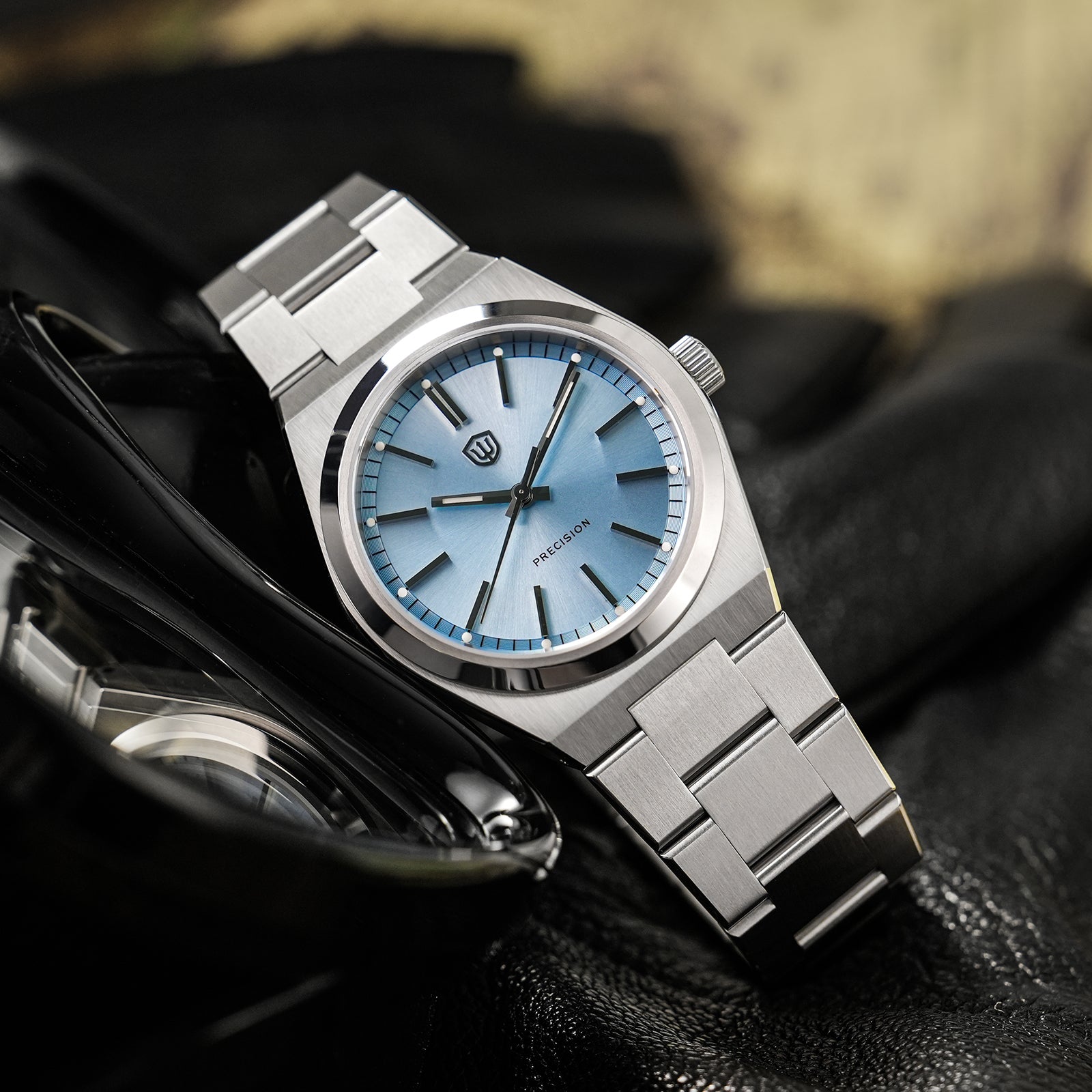Dial: Enamel sunburst (silver or light blue) with extra-thick A-grade applied indices and sharply finished hands.