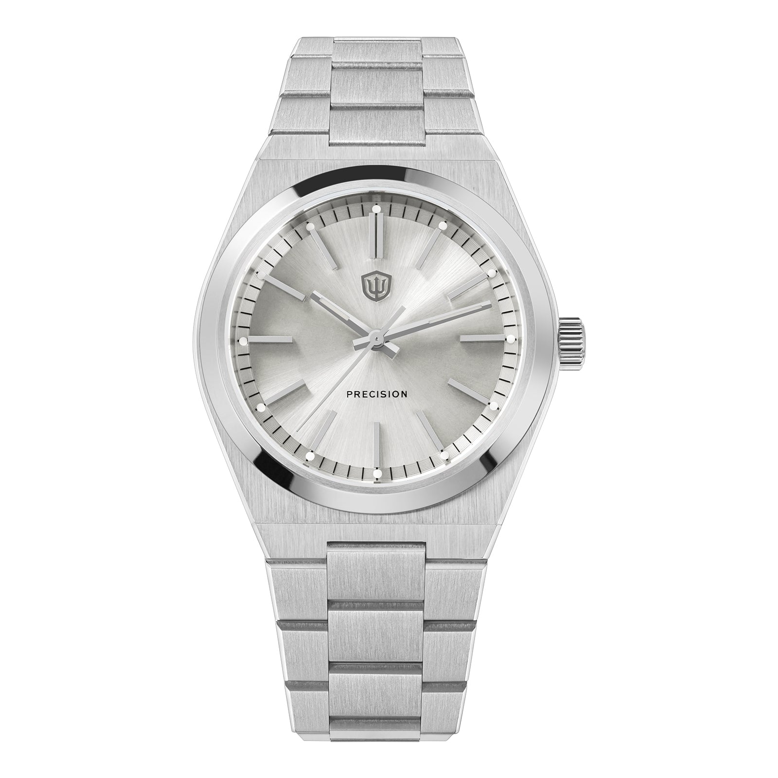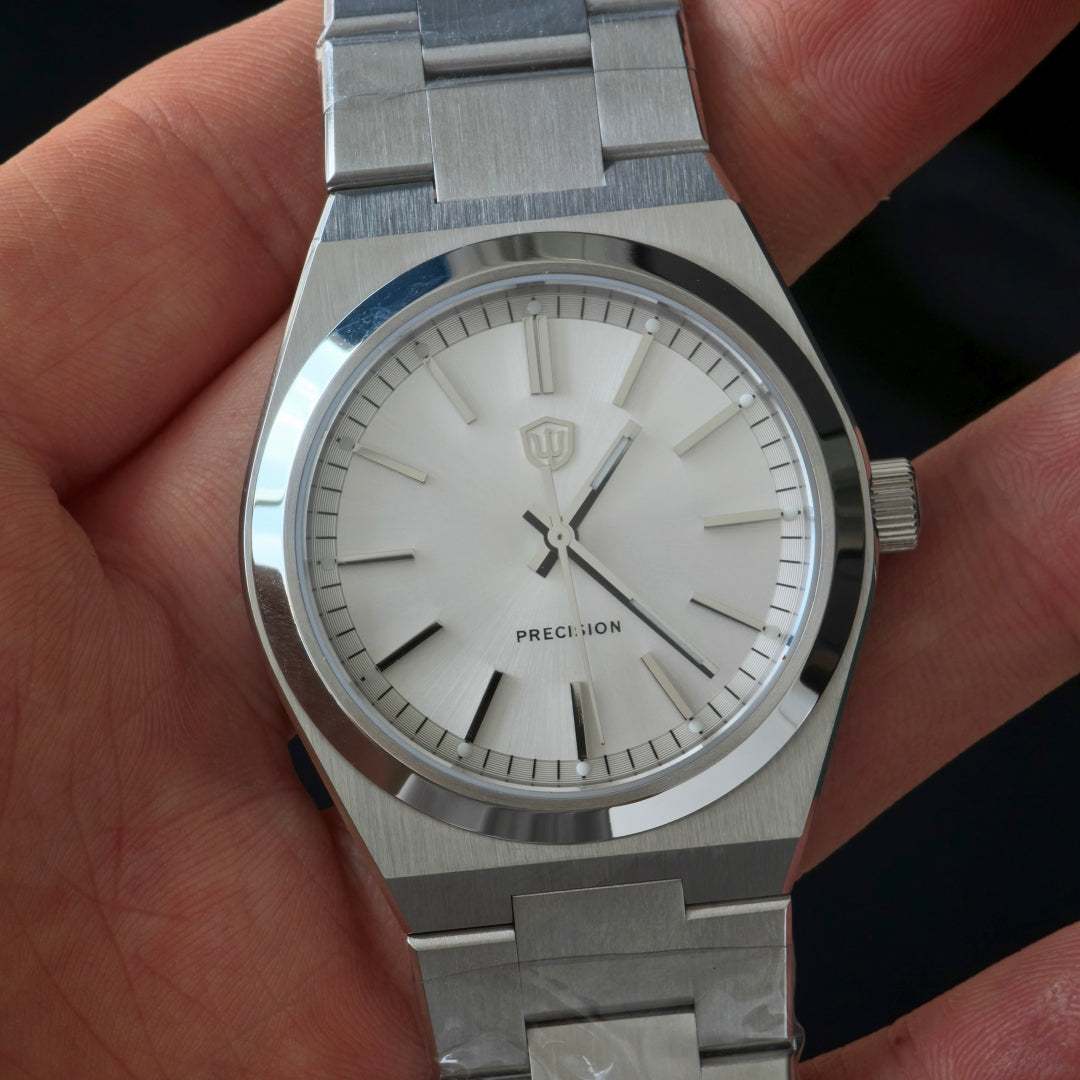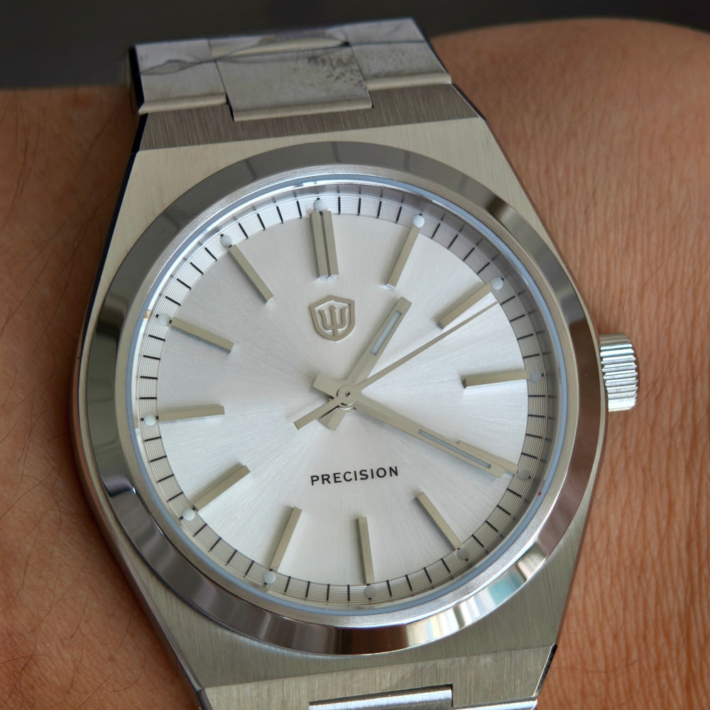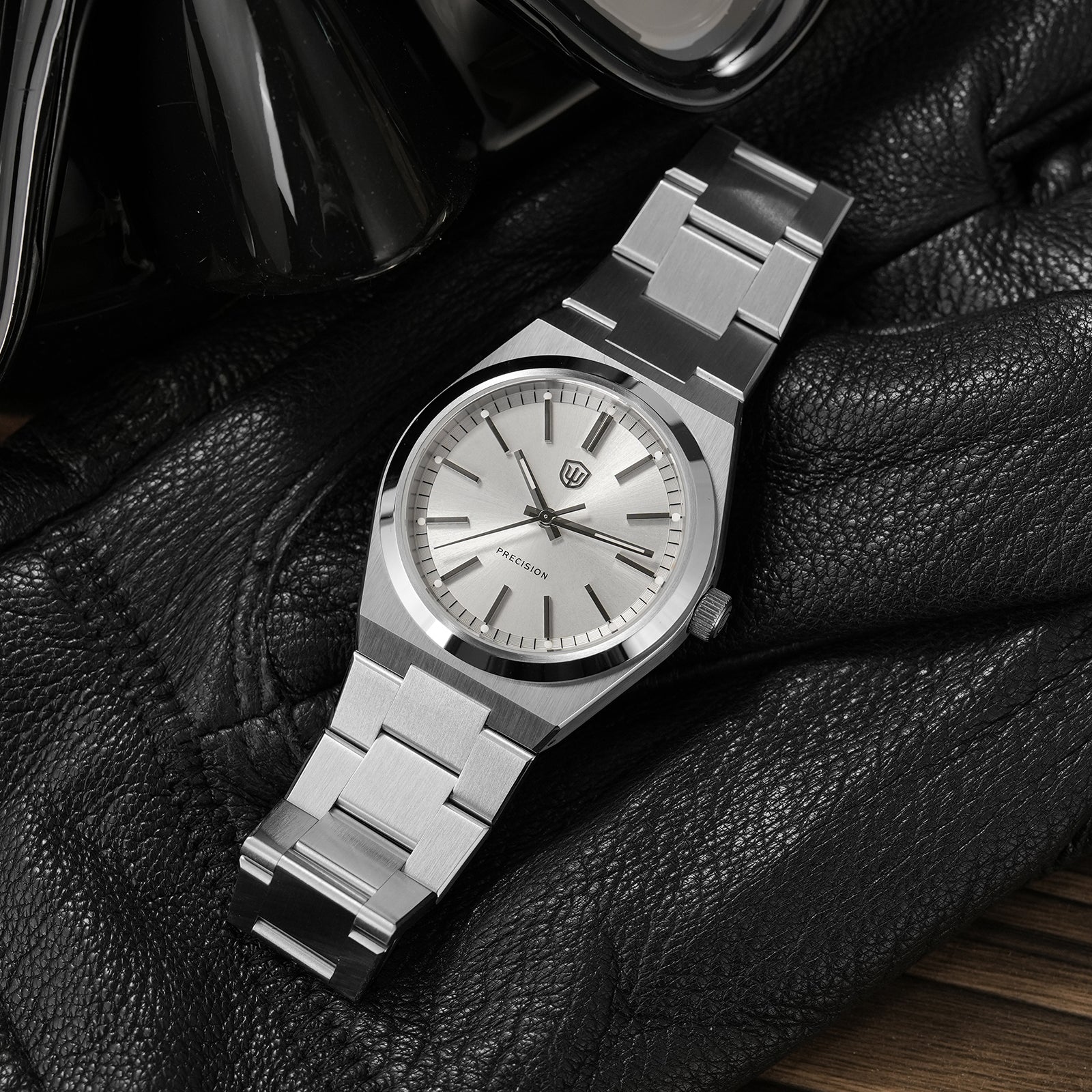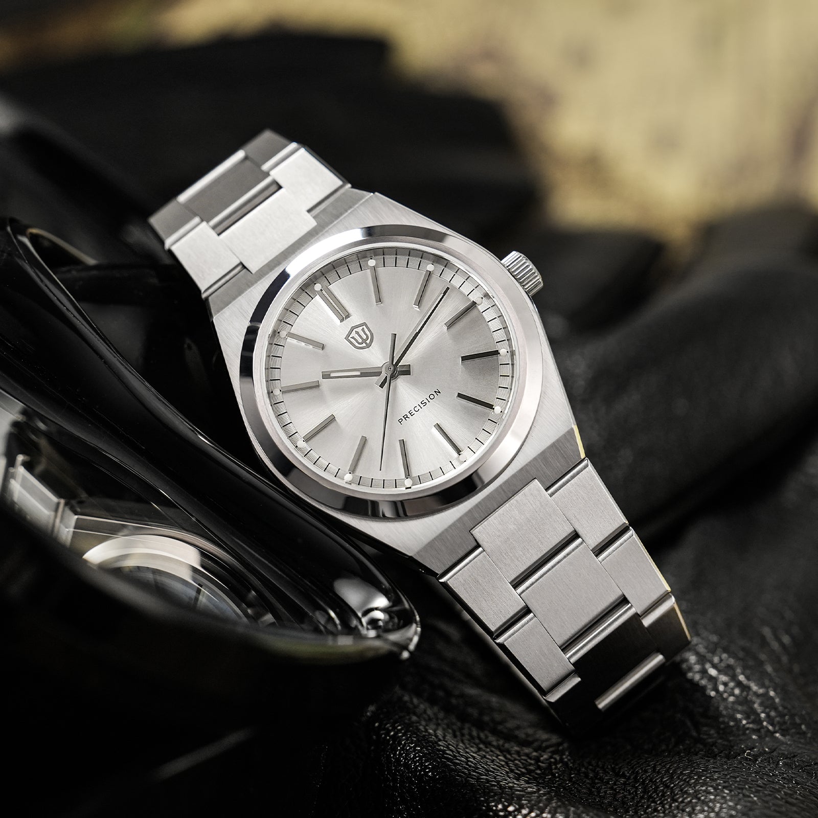A modern interpretation of late 70s–80s integrated quartz classics — no trademark terms used, only solid craftsmanship and wearability.
