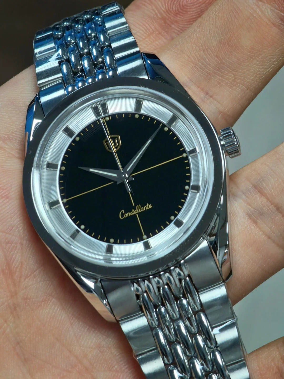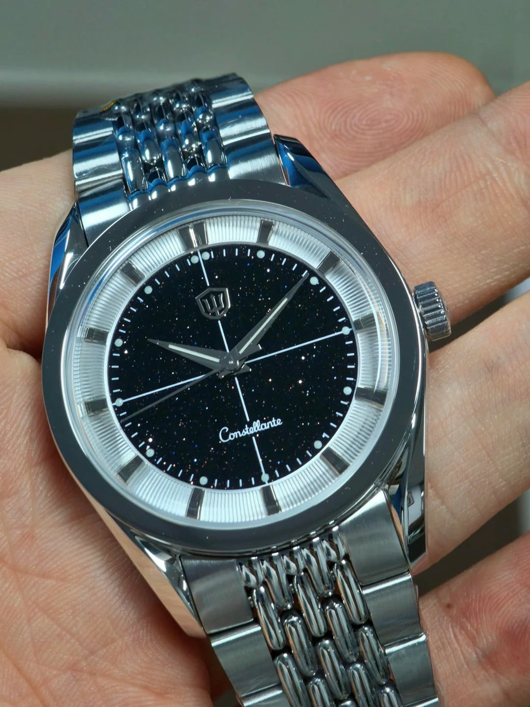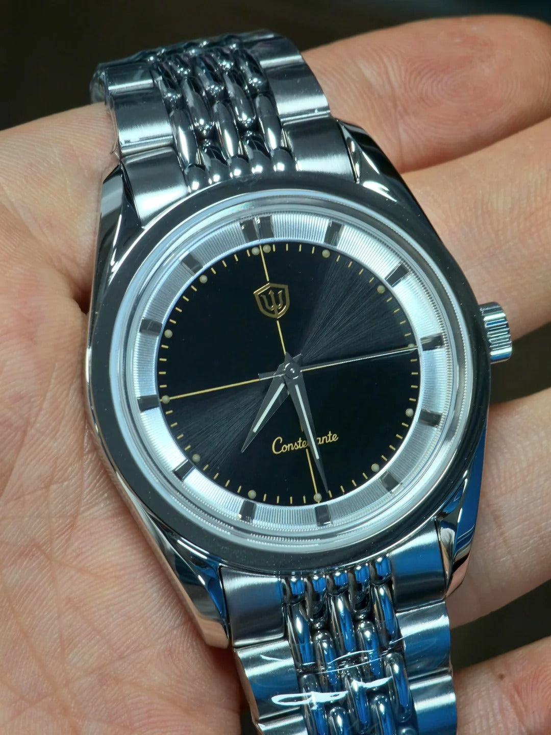 Because of this layered structure, very minor alignment differences between the chapter ring and applied hour markers may be visible when viewed under magnification. This is a known and expected characteristic of this construction method and falls well within normal manufacturing tolerances.