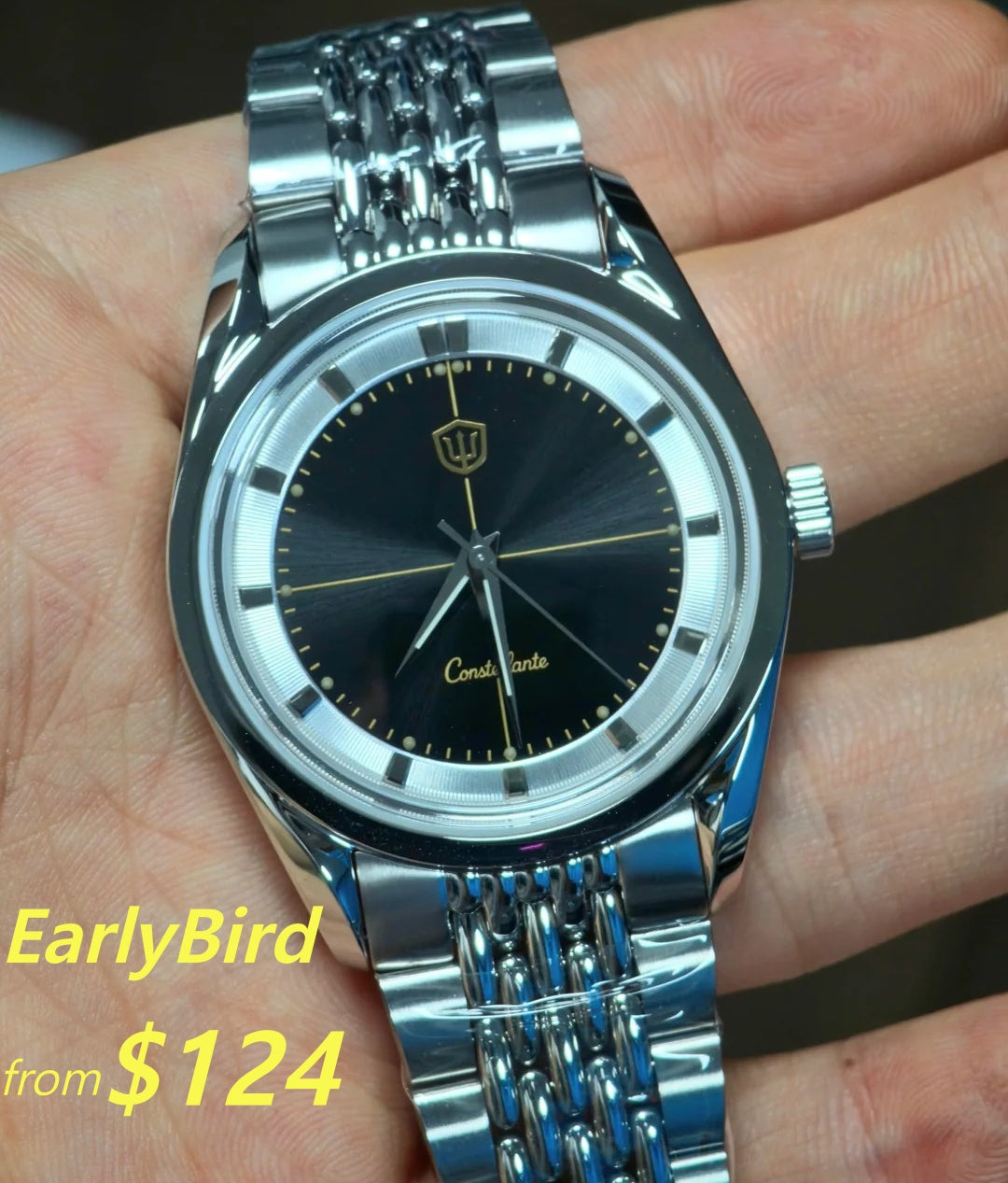 For the Arctic Classic 36, we intentionally enlarged the printed lume dots through multiple printing passes to achieve a more authentic late-1950s vintage look.