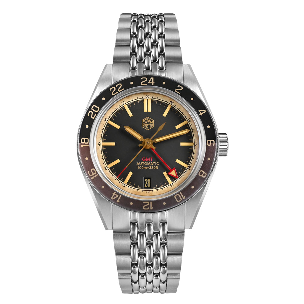 ★ US Pre-owned★San Martin Vintage Style NH34 GMT Men Watch SN0116G-B