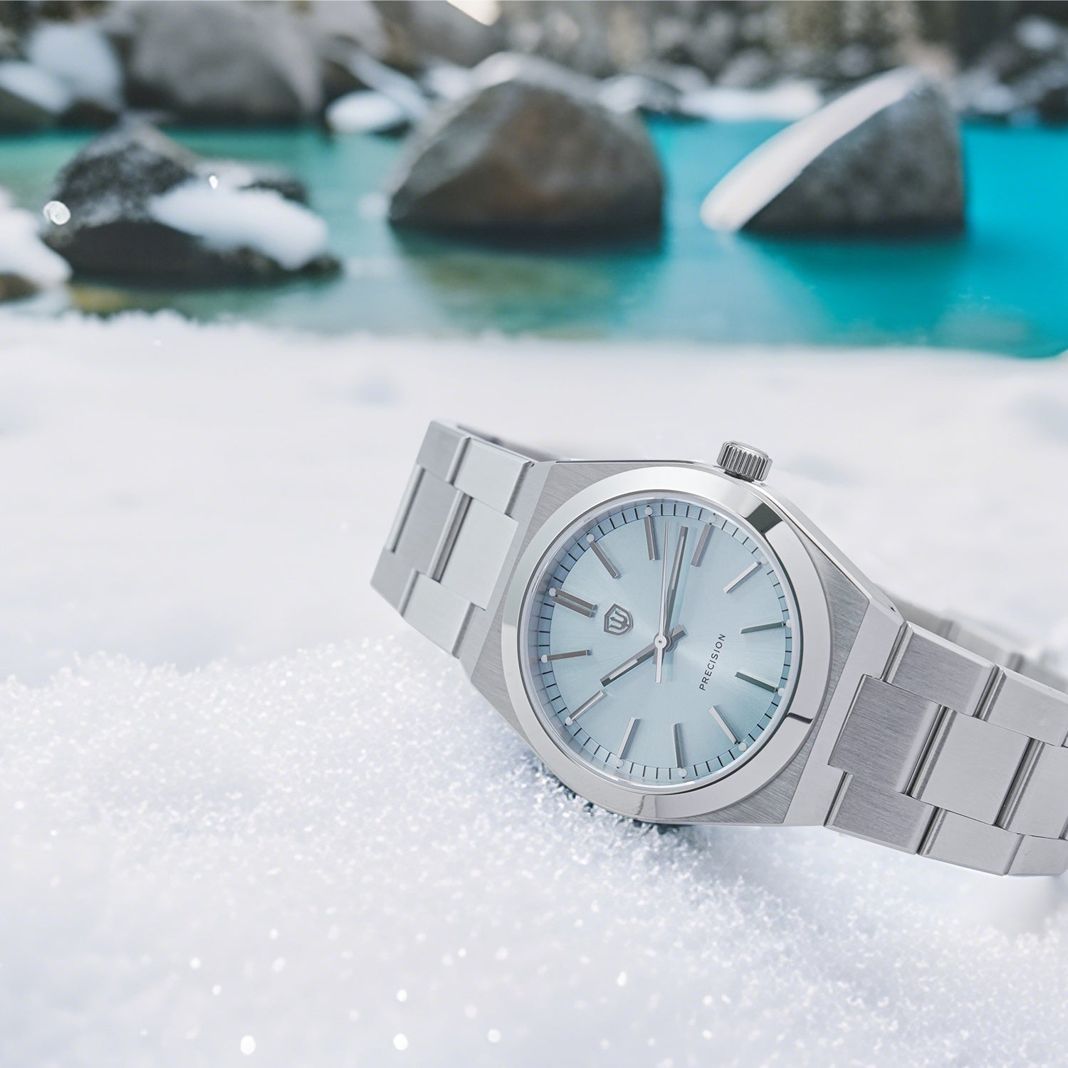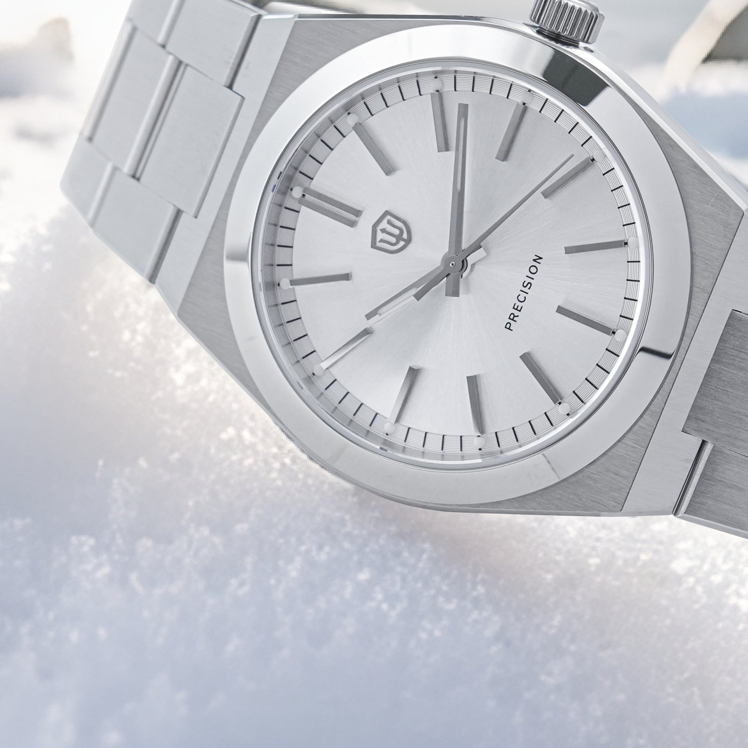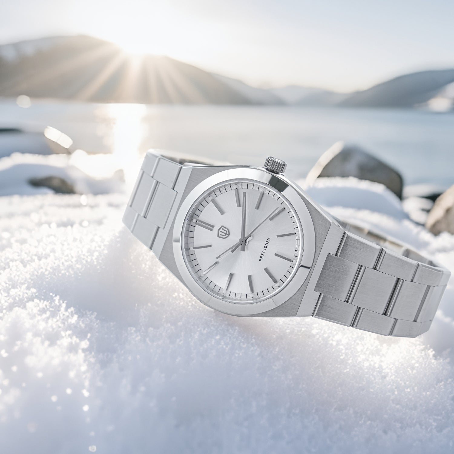 A modern interpretation of late 70s–80s integrated quartz classics — no trademark terms used, only solid craftsmanship and wearability.