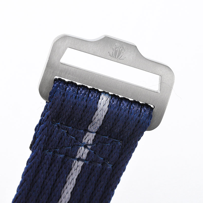 Bracelet: Fabric strap with self-gripping fastening system. Titanium buckle