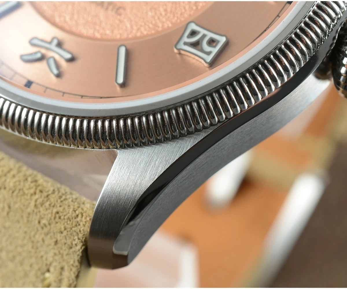 Strap: Quick Release Premium Suede Leather Strap, Width 20x18mm, Solid 316L Stainless Steel Pin Buckle, With Text San Martin Logo
