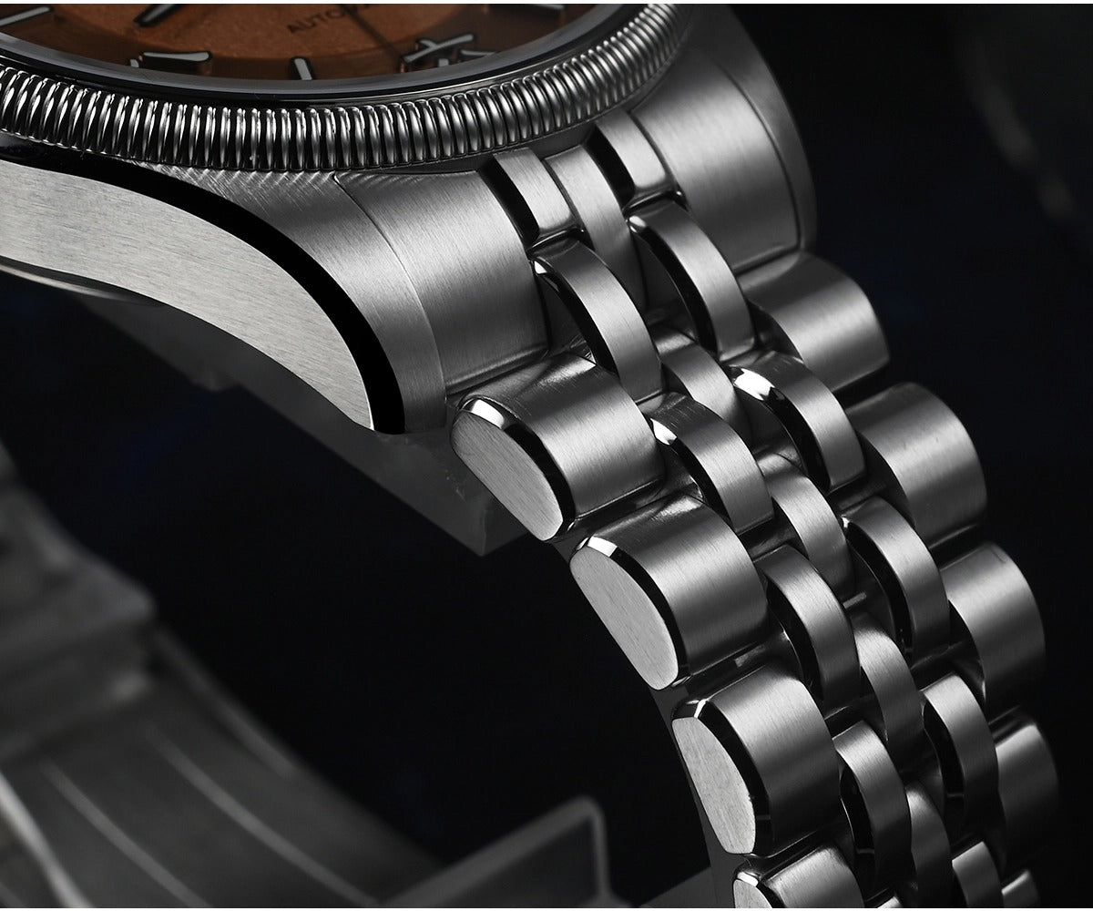 New Solid 5-Link 316L Stainless Steel Jubilee Bracelet: Size 20x16mm, With Polished Chamfers On Bracelet Edges & Both Sides Of The Second And Fourth Links, With New On The Fly Adjustable Folding Clasp, With 3D San Martin Hexagon Logo
